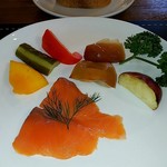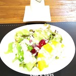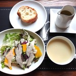 ガーデンカフェ 風見鶏 - ランチのセットのパン、サラダ、スープ